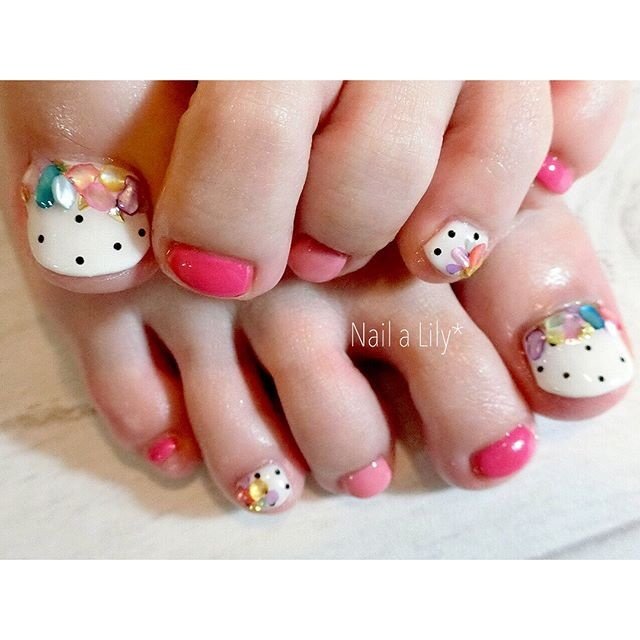 夏 フット ドット カラフル ジェル Gracenailのネイルデザイン No ネイルブック ペディ ペディキュアのネイルアート つま先ネイルデザイン